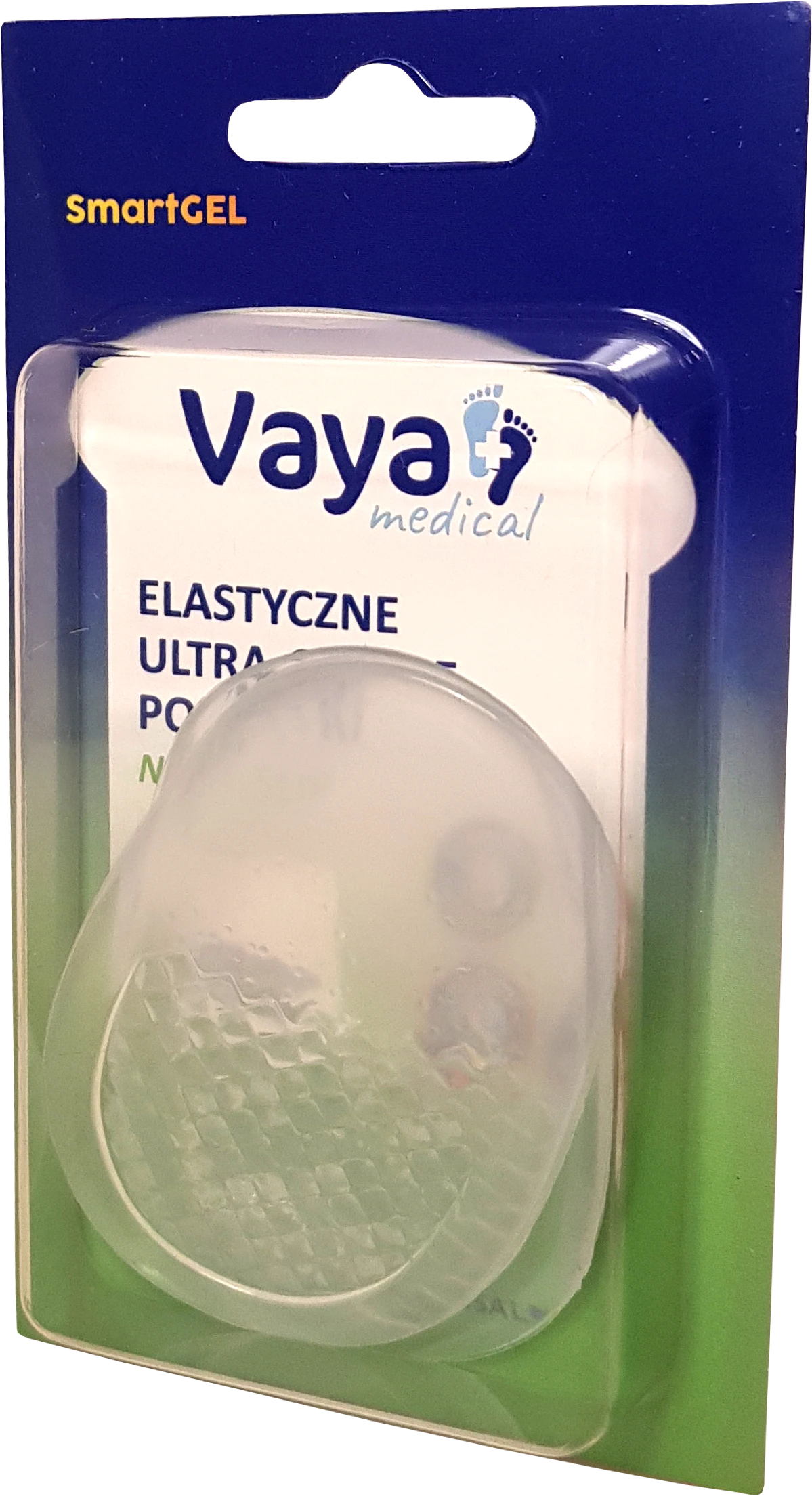 Wkładki na ostrogi piętowe przeznaczonego do zmniejszania ucisku na piętę. Nowa technologia NEVER SLIP zapobiega ześlizgiwaniu oraz odkształcaniu się podpiętek. Amortyzują, chronią oraz łagodzą bóle piet są wyjątkowo miękkie dla skóry, podpiętki żelowe zapobiegają pieczeniu pod piętami. Przezroczyste i bardzo cienkie, są mało widoczne. Dla utrzymania higieny wystarczy przemyć wodą, samoprzylepne. Przeznaczone do wielokrotnego użycia, do stosowania we wszystkich typach obuwia. Mogą być używane przez osoby cierpiące na cukrzycę.