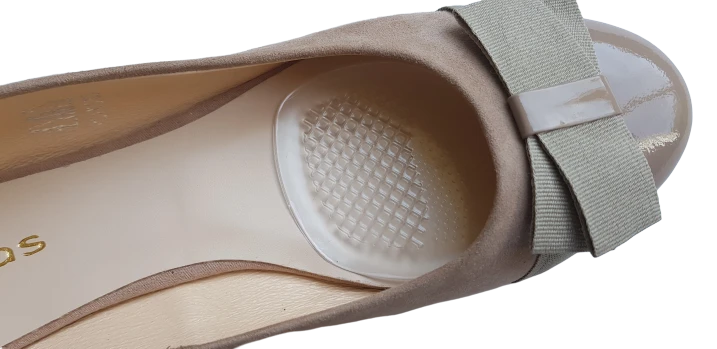 Umieść poduszką w przedniej części obuwia, zwężonym końcem w kierunku tylnej części buta.