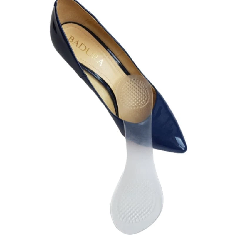 Zmniejszają ucisk i wstrząsy zapewniając wygodę stopom. Unikalna budowa wkładek zapewnia dodatkową amortyzację pod śródstopiem i piętą, uniwersalna długość 3/4 pasuje do wszystkich typów obuwia. Przezroczyste i bardzo cienkie są mało widoczne, dla utrzymania higieny wystarczy przemyć wodą są również samoprzylepne. Przeznaczone do wielokrotnego użycia. Do stosowania we wszystkich typach obuwia, ale idealne do wysokich obcasów (wkładki żelowe do szpilek) Mogą byc używane przez osoby cierpiące na cukrzycę.