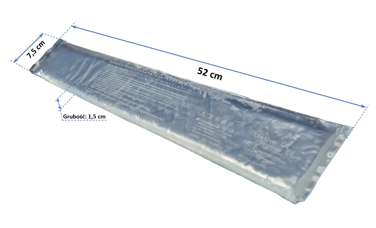 - Wysokiej jakości okład żelowy ciepło-zimno 7,5x52 cm, specjalistyczny produkt medyczny wielokrotnego użytku. Przynosi ulgę w bólu o różnym natężeniu i różnego pochodzenia.