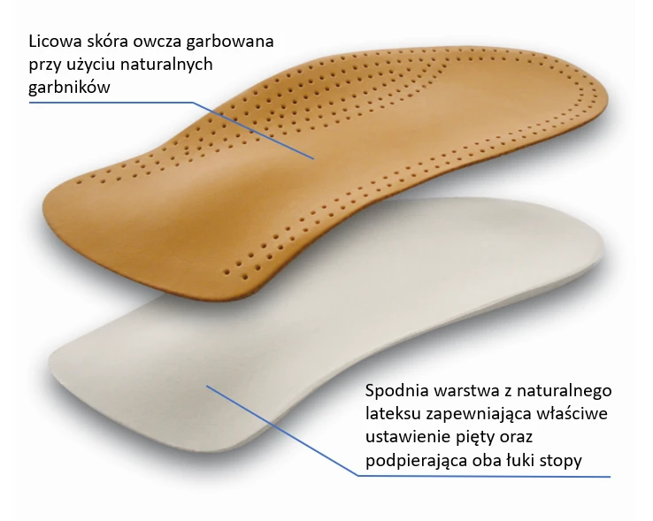 Wierzchnia warstwa wkładek ortopedycznych Vaya Comfortino wykonana jest z miękkiej garbowanej roślinnie owczej skóry o doskonałych właściwościach higienicznych. Spodnia warstwa z pianki lateksowej ustawia piętę w prawidłowym położeniu i zapewnia wyjątkowy komfort i elastyczność podczas chodzenia. Wyprofilowane elementy, pelota oraz klin podpierają oba łuki stopy, podłużny i poprzeczny. Wkładki skutecznie zapobiegają zmęczeniu stóp oraz odciążają mięśnie, ścięgna i więzadła. Pasują do każdego buta dzięki długości 3/4.